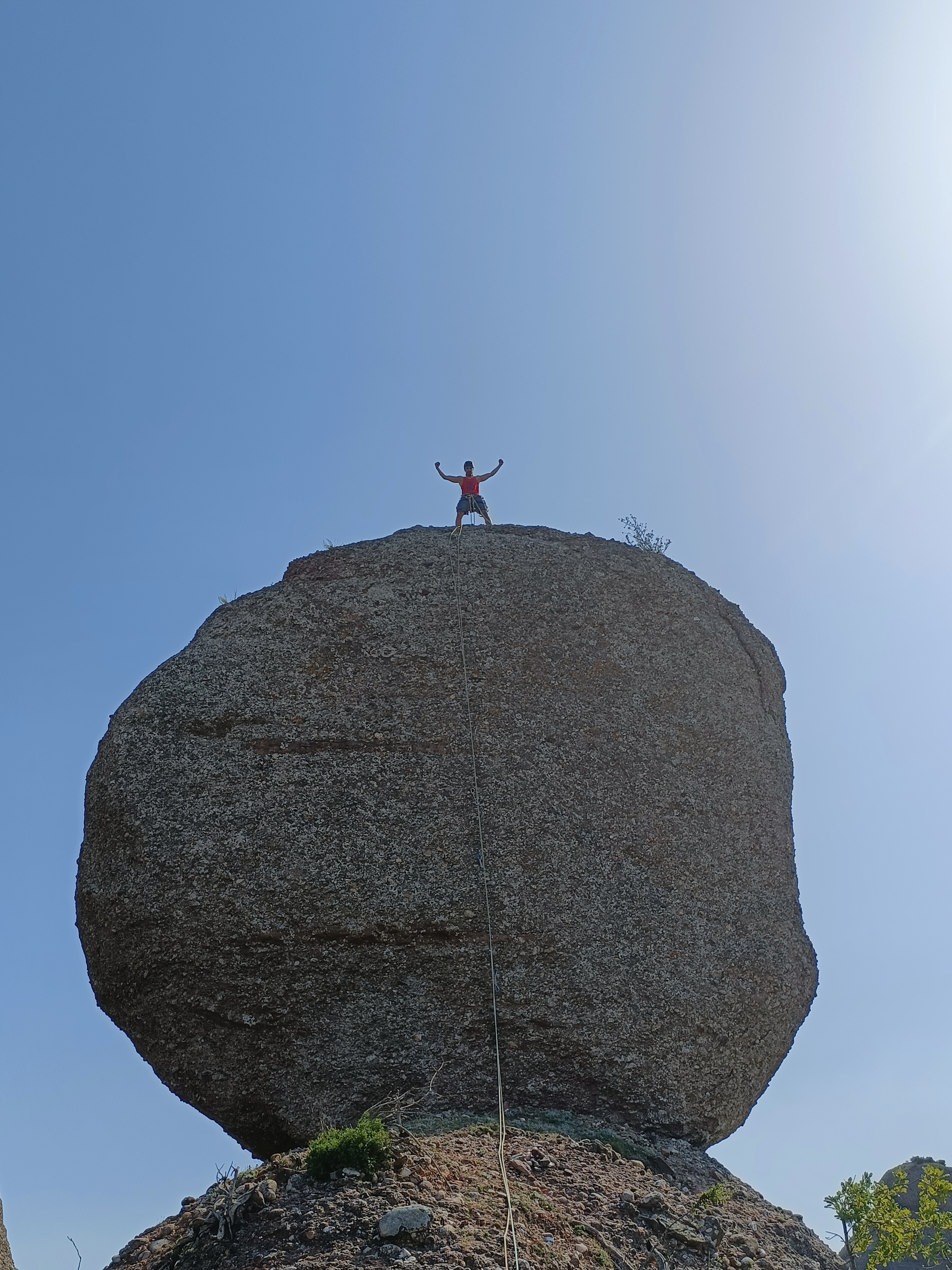 • Observaciones: La roca para ser frares es buenísima y la vía super chula para hacer en libre . Nos sale toda en libre menos una parada en el 7a+ al confundirme, algún día la repetiré ;P. Los buriles se intercalan con parabolts de inox. Merece la pena hacer la R4 y no saltársela y luego hacer la reunión siguiente debajo de la bola justo en su izq. El largo de la bola es explosivo, los demás son más de continuidad. Saludosss